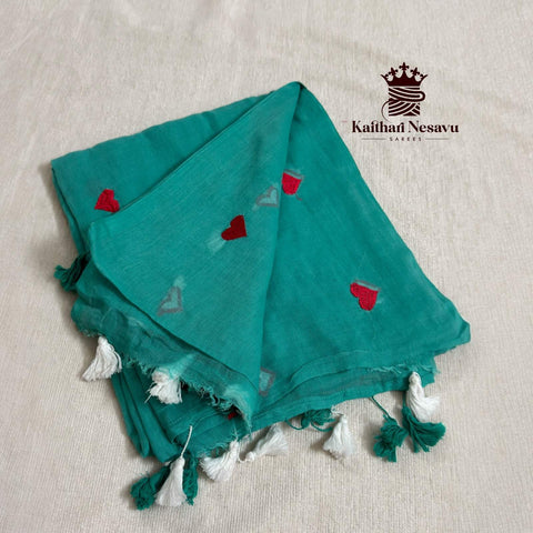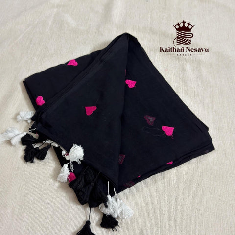 Premium Mul Cotton Saree with Heart Embroidery – Dual Pink Shade