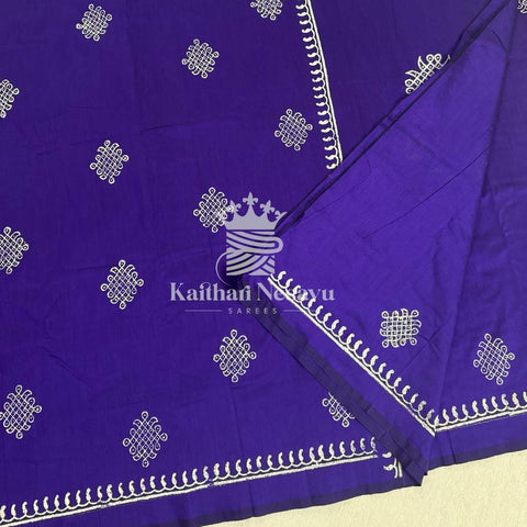 Budget Friendly Kolam Design Cotton Saree with Mango Block Print Border | Hand Kolam Blouse